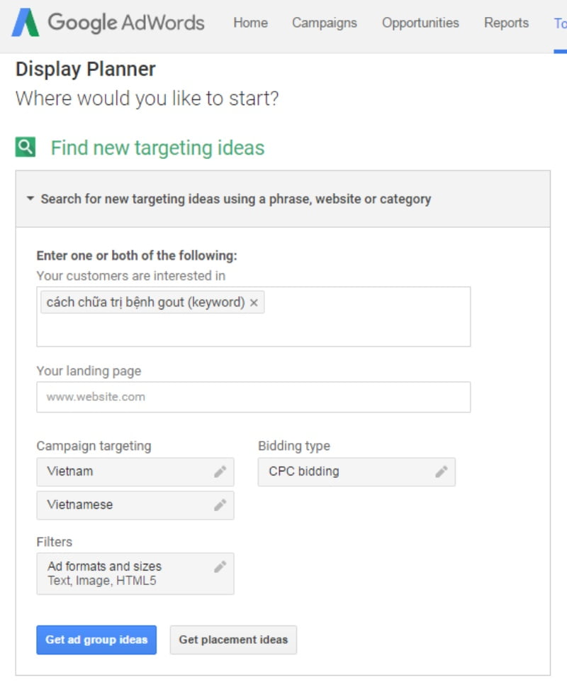 Bạn có thể sử dụng công cụ AdWords Display Planner để nghiên cứu từ khóa cũng như viết mô tả cho video và lên mục tiêu cho chiến dịch quảng cáo đặt ra.