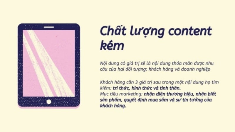 Nội dung như thế nào là chất lượng kém? Nội dung chất lượng kém là nội dung không mang lại giá trị cho khách hàng và đồng thời không đạt được mục tiêu marketing đã được đề ra.