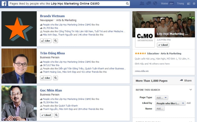 Sử dụng Graph Search và Lookalike Audiences (Đối tượng tương tự) để tìm kiếm những những người tương tự như trong danh sách email của bạn. Đây là những người thích những trang và sở thích cụ thể phù hợp với đoạn thị trường mà bạn đang hướng đến.