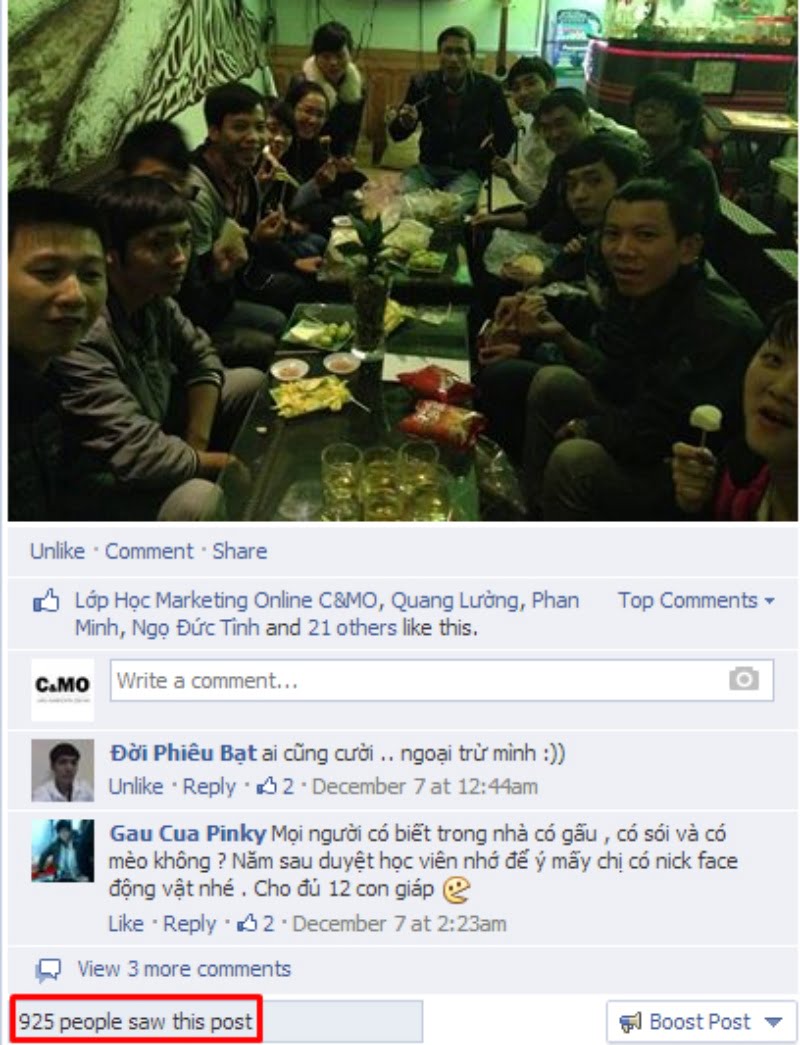 Trước khi bắt đầu khóa C&MO 03 của Lớp học Marketing Online C&MO, mình có tạo Event và đăng lên Fanpage SinhVienIT (~500k fans), mình nhận được gần ~500 lượt đăng ký mới, tuy nhiên mình đã phải rất vất vả trong việc lọc người đủ điều kiện đi học, và có những người được mời đi học rồi thì lại bỏ giữa chừng vì cảm thấy không phù hợp (bất kì lí do gì!). Cuối cùng không có 1 người nào được giới thiệu từ Fanpage SinhVienIT có thể tham gia đến cuối khóa học của mình.