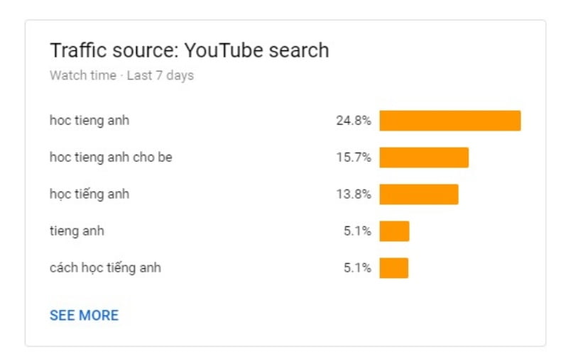 Như bạn thấy thì chỉ với tag là “học tiếng anh”, nhưng khi người dùng search bằng nhiều cách khác nhau thì video của chúng ta vẫn hiển thị. Chính vì vậy chúng ta không cần phải cố gắng đặt các thẻ như “hoc tieng anh” hay “hoc_tieng_anh” trong các thẻ tag của mình.