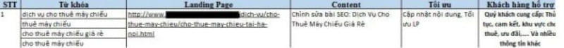 Phân tích Landing Page là bước phân tích xây dựng nội dung cho website dựa theo từ khóa có sẳn, đối thủ đạt top 10 để tiến hành đề xuất nội dung và các bước tối ưu tiếp theo cho Landing Page.