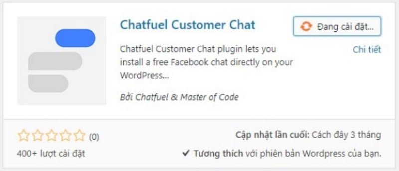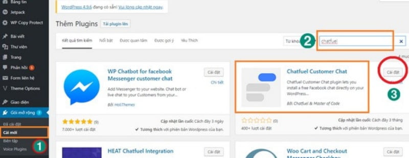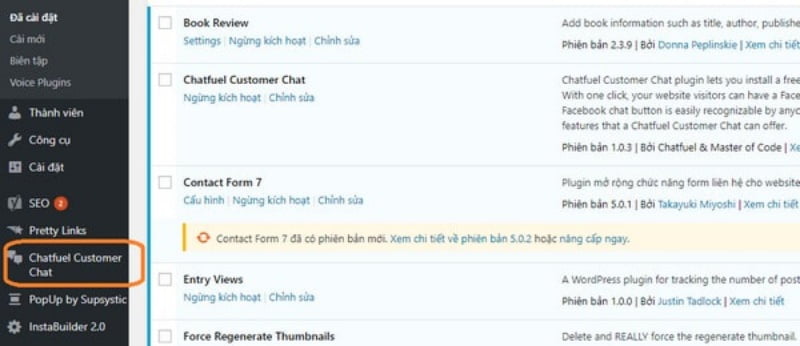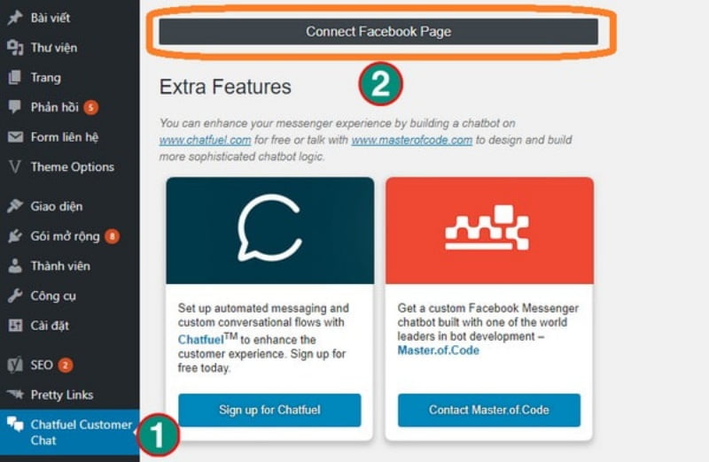 Bước 2: Sau khi Plugin đã được cài đặt vào website, bạn sẽ tìm thấy tab “Chatfuel Customer Chat” nằm ở bên hàng công cụ phía tay trái.
