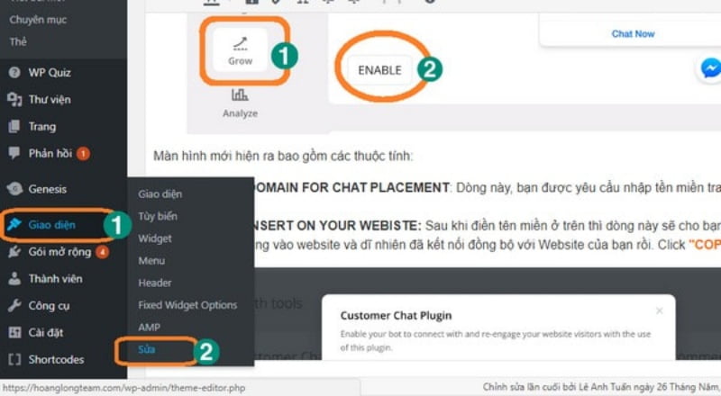 Sau đó, bạn vào mục Giao diện, bấm chọn Sửa (Edit).