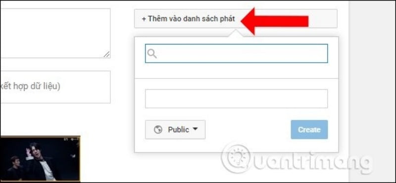 Trong trường hợp bạn muốn tải video Youtube vào playlist video Youtube đã có chỉ cần nhấn vào tên playlist đó. Hoặc muốn tạo playlist mới thì nhấn Create a new playlist. Chúng ta cũng sẽ được chọn chế độ hiển thị cho playlits mới tạo. Nhấn Create để tạo playlist mới.