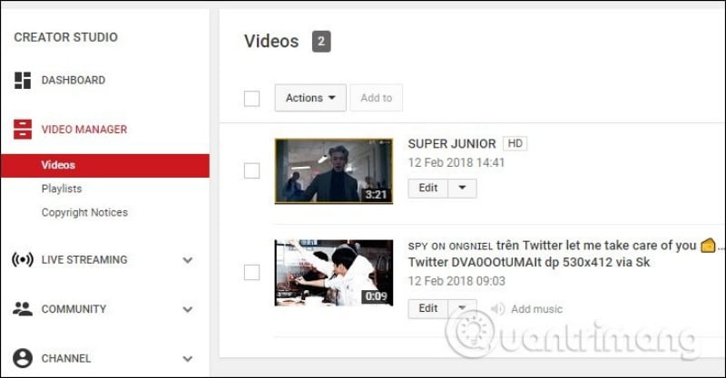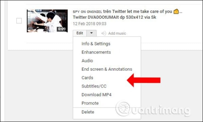 Nếu muốn chỉnh sửa video thì nhấn vào nút Edit ở cạnh video. Xuất hiện danh sách các tùy chọn chỉnh sửa video tải lên Youtube.