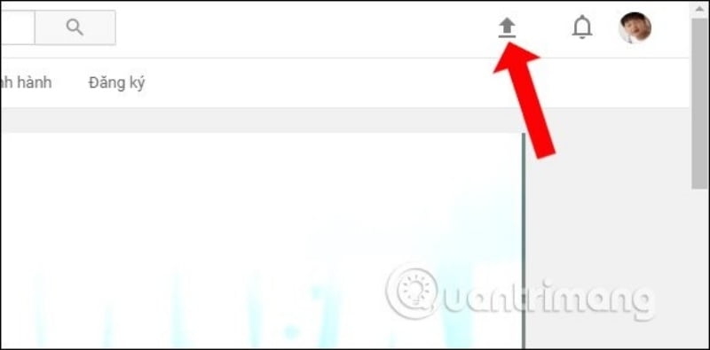 Khi đã đăng nhập tài khoản Youtube và quay trở lại giao diện chính của Youtube, chúng ta sẽ nhấn tiếp vào biểu tượng mũi tên upload video như hình dưới đây.