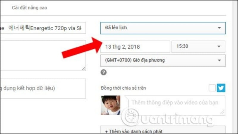 Ngoài ra cũng sẽ có thêm tùy chọn Đã lên lịch để đặt lịch upload video lên Youtube.