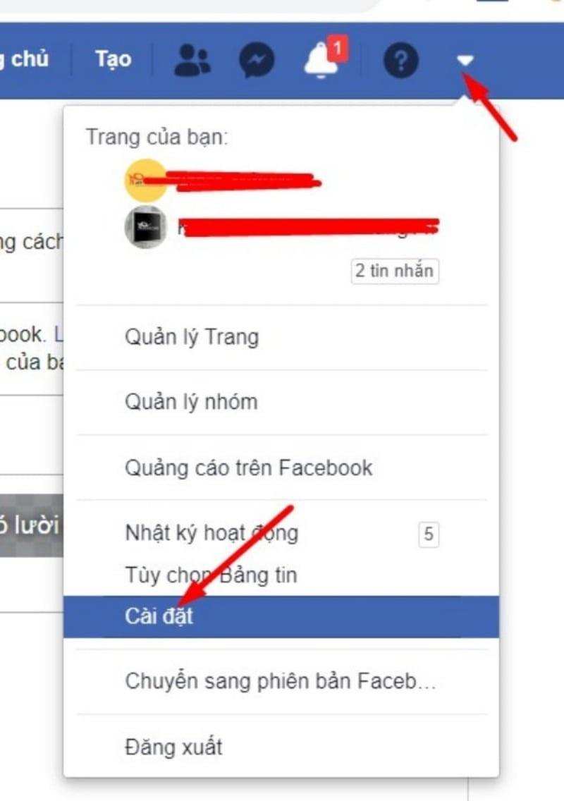 Bước 3: Ấn vào biểu tượng tam giác ngược bên góc phải màn hình và chọn Cài Đặt