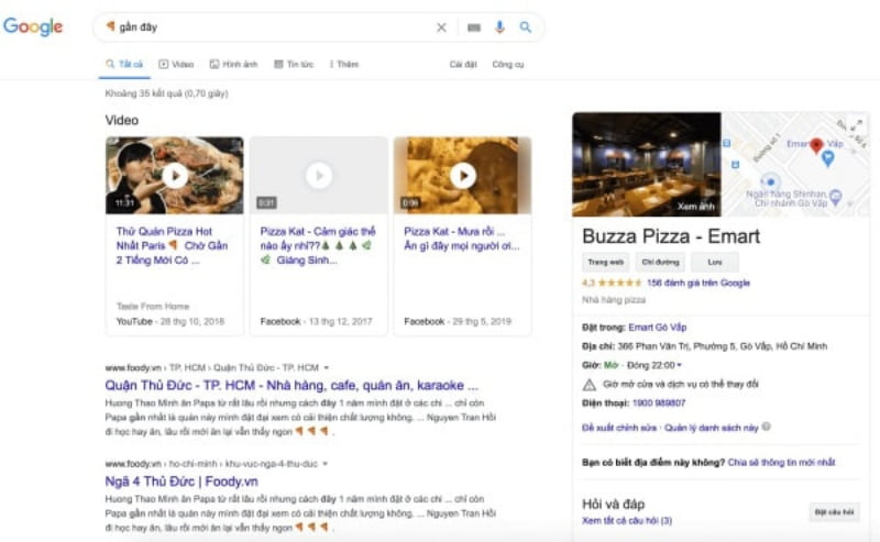 Nhìn vào ví dụ dưới đây, chúng ta có thể thấy kết quả hoạt động giống như chúng ta đang tìm kiếm từ cụ thể – pizza.