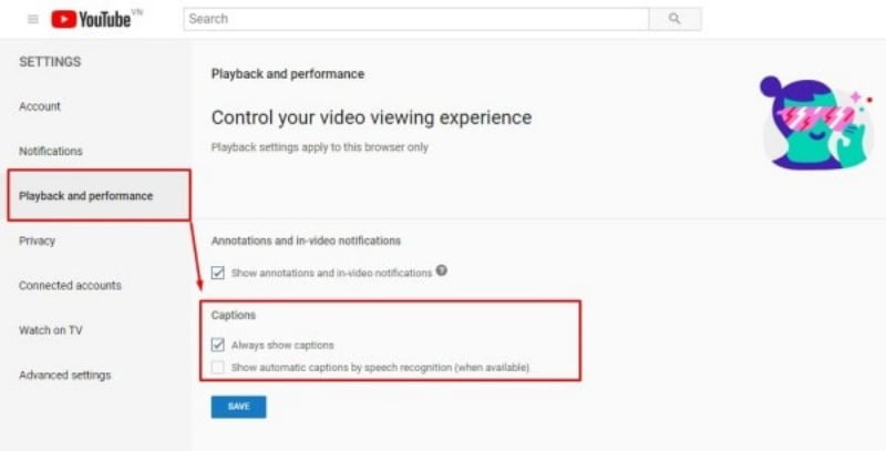 - Bước 2: Truy cập link này để tới giao diện của tính năng Playback and performance.