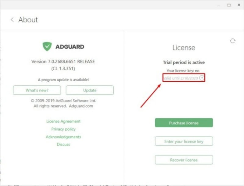 Sau khi cài đặt xong. Vào mục About trên phần mềm để kiểm tra, key bản quyền hoạt động đến năm 2020.
