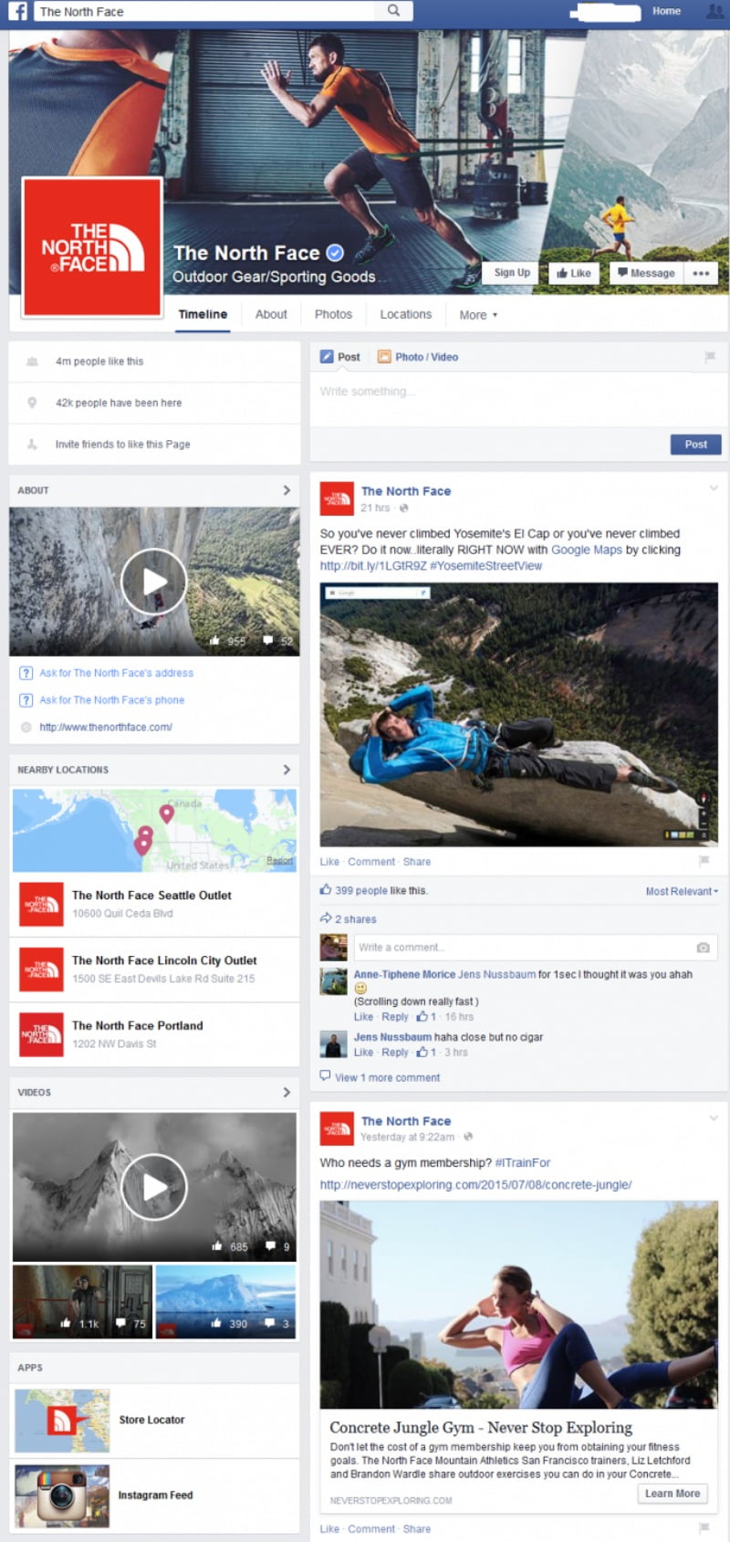 Điển hình cho ý tưởng này là Facebook Page của The North Face, chia sẻ hàng loạt những thông tin cực kỳ thú vị và hữu ích.