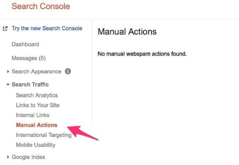 Nếu bạn thấy thông báo, “No manual webspam actions found” (Tạm dịch: không có hành động webspam thủ công nào được tìm thấy) thì ….