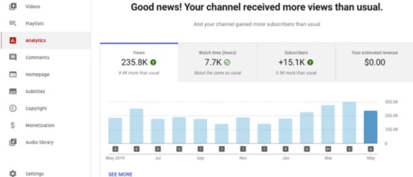Đầu tiên, YouTube cho ra mắt một biểu đồ hiệu suất kênh mới, được tích hợp trong Creator Studio, hiển thị lượt xem, số lượt người đăng ký kênh, thời lượng xem và hiệu suất doanh thu trên một bảng duy nhất.