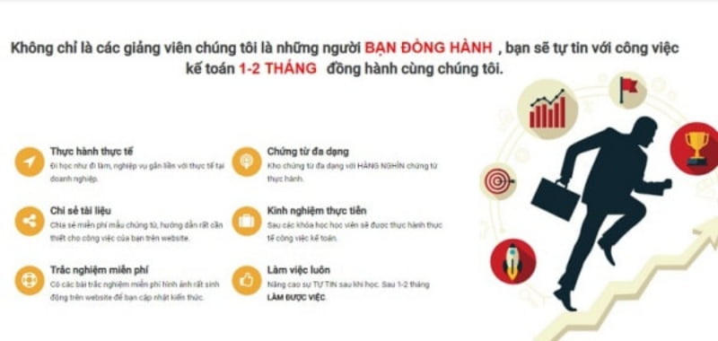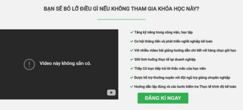 - Thông điệp chính ở đây chính là giới thiệu cho khách hàng biết landing này hướng tới mục đích là bán khóa học kế toán thực hành tổng hợp online.