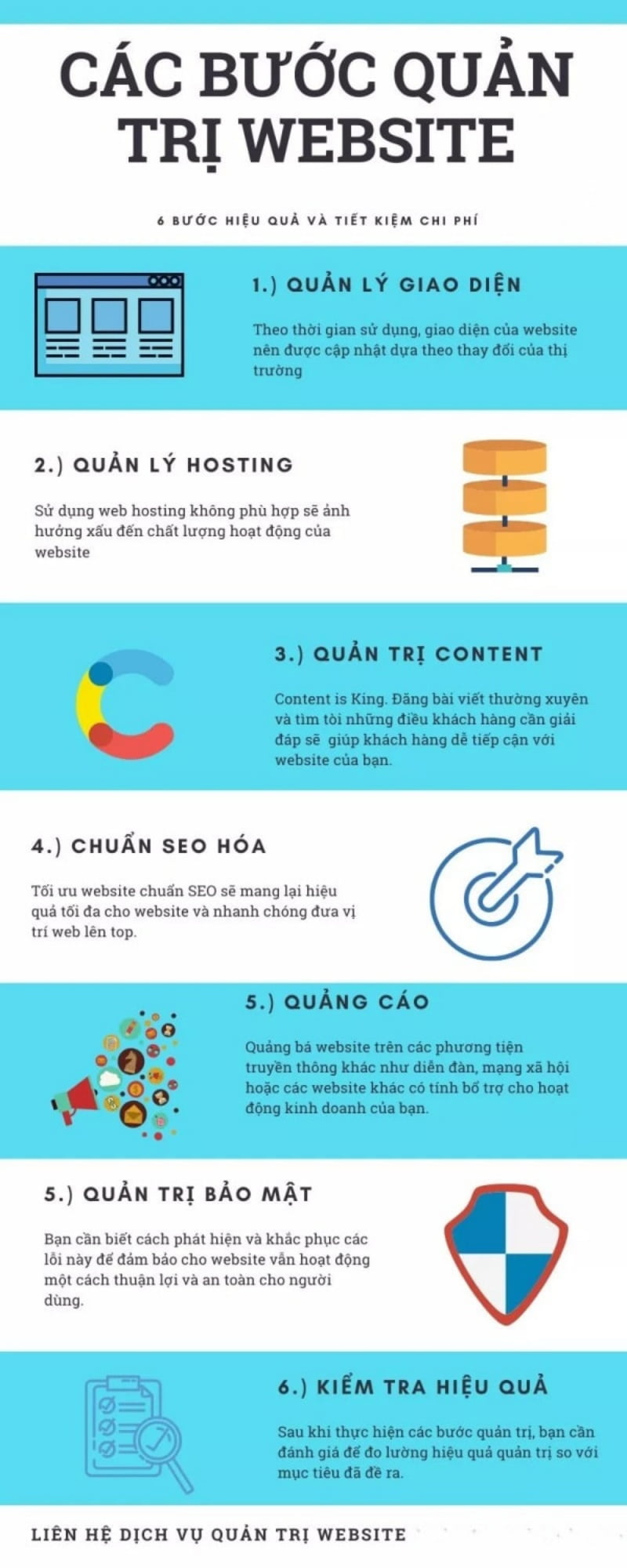 Quản trị website bao gồm công tác vận hành, quản lý và chăm sóc website trong thời gian website hoạt động. Quản trị website hiệu quả sẽ cải thiện chất lượng phục vụ của website tốt hơn theo thời gian.