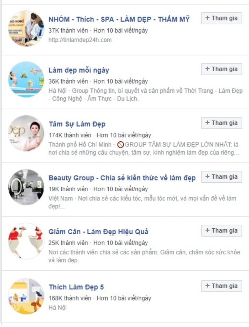 Như bạn thấy thì về lĩnh vực làm đẹp có Group đến 174k thành viên. Phía dưới của khung search còn rất nhiều Group hơn 280k thành viên. Nếu những bài viết của bạn trong group này thành công thì chúng ta sẽ kéo một lượng lớn khán giả quan tâm về kênh.