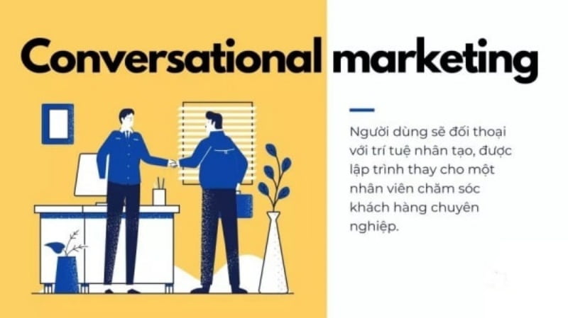 Conversational marketing là một hình thức marketing tiên tiến mà trong đó người dùng sẽ đối thoại với trí tuệ nhân tạo, hay bộ não được lập trình thay cho một nhân viên chăm sóc khách hàng chuyên nghiệp.