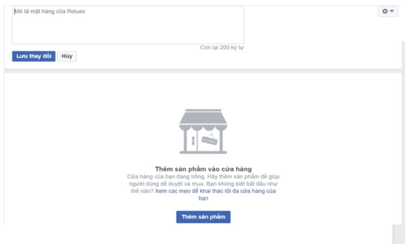 Ở phía dưới ảnh bìa sẽ có mục “thêm phần cửa hàng”. Bạn cần click vào mục này. (Nếu không tìm thấy thì bạn quan sát phía dưới phần ảnh đại diện của trang fanpage chính).