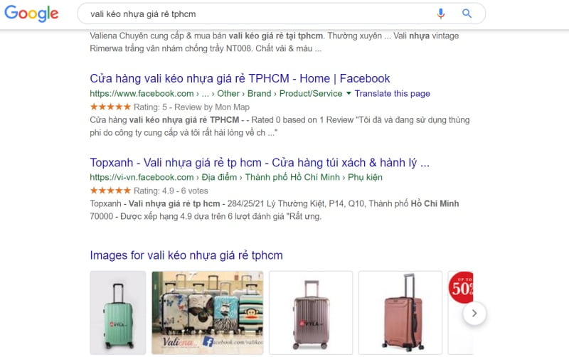Ví dụ: Tôi bán vali kéo, vali nhựa, vali du lịch, vali giá rẻ, vali tại tphcm thì tên Fanpage có thể là: Vali kéo nhựa du lịch giá rẻ tại TPHCM – VYLA. VYLA là thương hiệu của cửa hàng tôi vì thế tôi đưa nó vào.