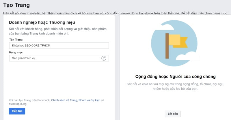3. Cách tạo 1 Fanpage Facebook chuẩn để tối ưu