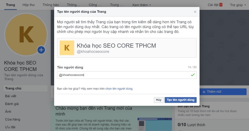 4.1.2 Tối ưu tên người dùng hay URL Fanpage Facebook