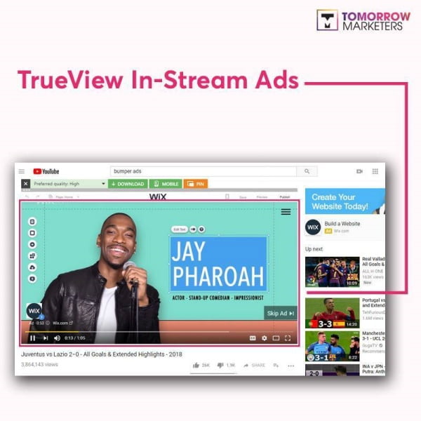 Trueview đúng như tên gọi của nó là thuật ngữ Youtube ghi nhận một lượt xem quảng cáo thực sự từ audience và khách hàng chỉ trả tiền dựa trên số lượng trueview này. Trueview in-stream ads hay Skippable Ads là hình thức hiển thị một clip quảng cáo được phát trước khi xem video và có thể “bỏ qua” – “skip” sau 5s. Độ dài của Trueview In-stream Ads kéo dài từ 12 giây đến 6 phút. Doanh nghiệp cũng chỉ phải trả tiền khi bạn xem đến giây thứ 30 (hoặc hết quảng cáo đối với quảng cáo có thời lượng ít hơn 30s).