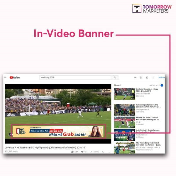 Khá giống với loại hình Standard Display tuy nhiên In-video banner là banner quảng cáo xuất hiện chồng lên video youtube trong suốt quá trình xem. Tuy nhiên, người xem có thể gỡ bỏ và khách hàng cũng chỉ bị tính phí khi người dùng click vào banner.