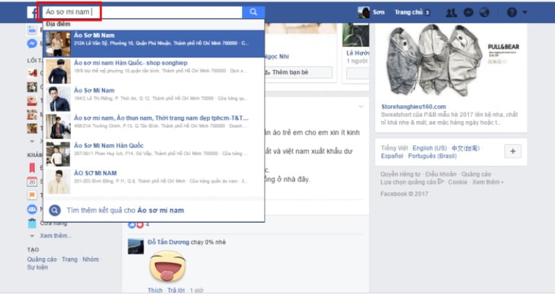 Tôi có 1 Fanpage kinh doanh quần áo trên Facebook, nhưng bỏ không chạy quảng cáo từ lâu. Tuy vậy tôi để ý một tuần lại có vài khách hàng hỏi mua. Tôi tự hỏi tại sao thì biết được Fanpage của mình đã lên được TOP 3 tìm kiếm của Facebook.