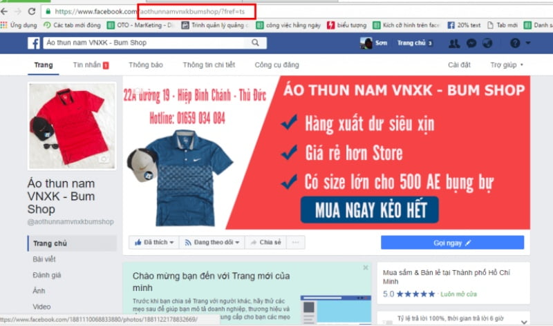 URL của fanpage để hiệu quả nên có từ khóa sản phẩm. Ngoài giúp lên top Facebook, nó còn hỗ trợ lên cả top Google nữa. Một mũi tên trúng 2 đích.